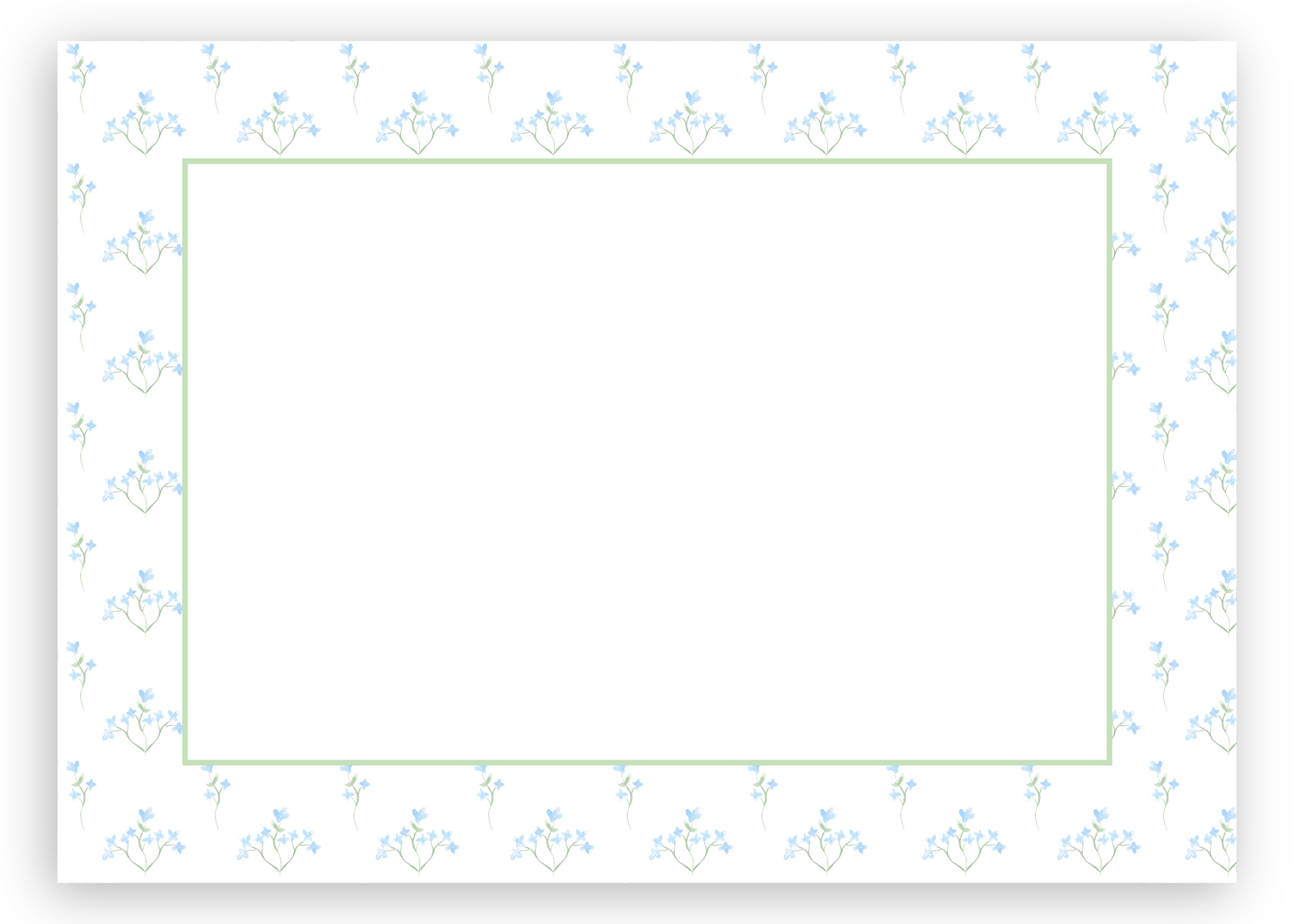 The Sally stationery set features a pattern of dainty light blue flowers with green detailing.